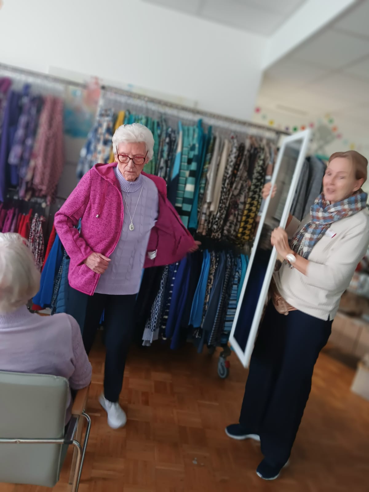 Das ModeMobil war mal wieder vor Ort bei uns in der Tagespflege. Unsere Tagesgäste sowie die Bewohner unserer ambulant betreuten Senioren-Wohngemeinschaften nahmen das Angebot sehr gerne an und ließen sich fachkundig beraten.